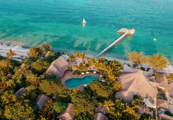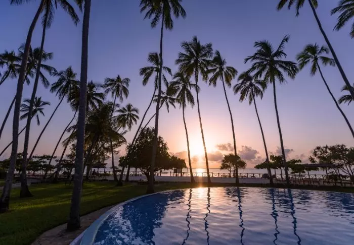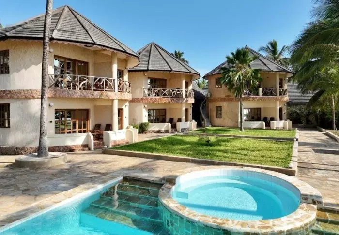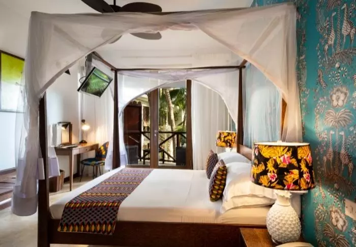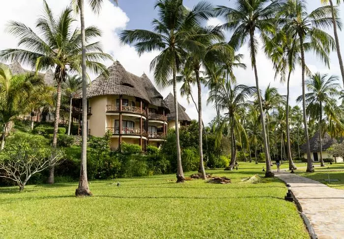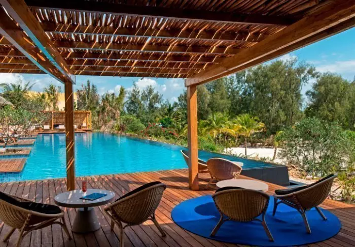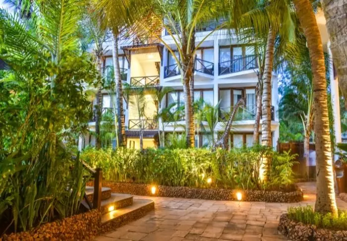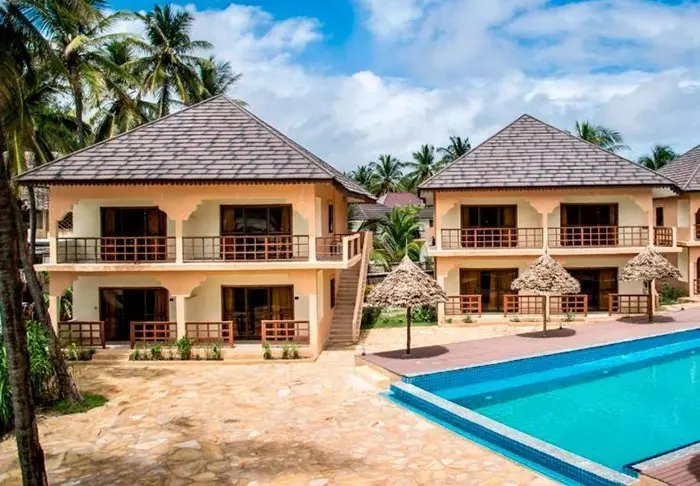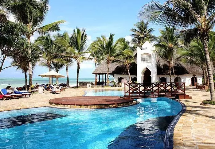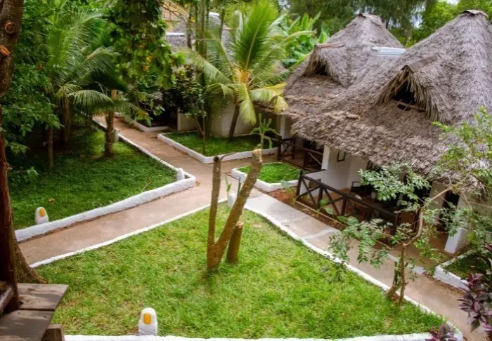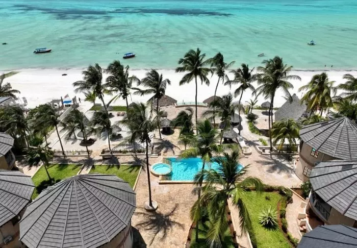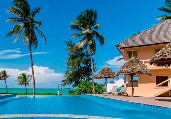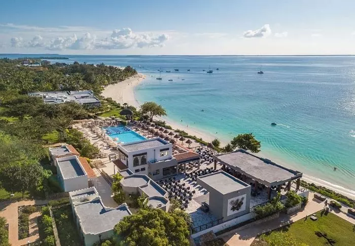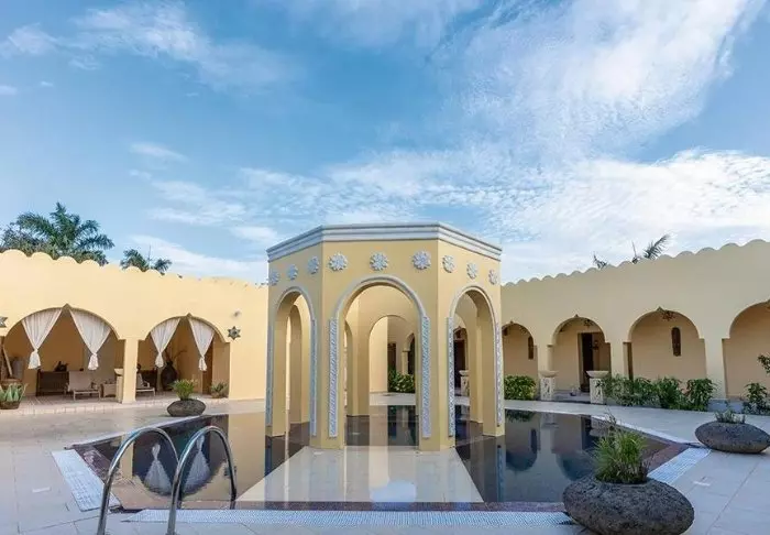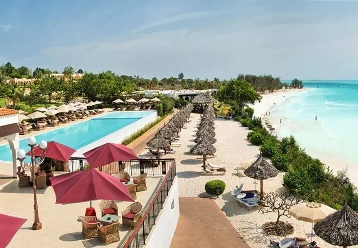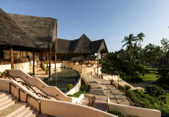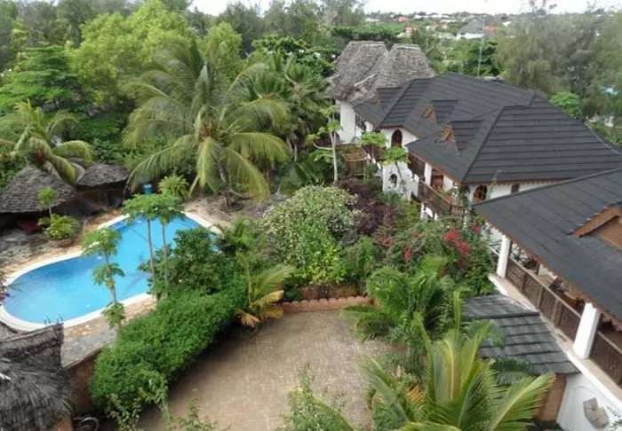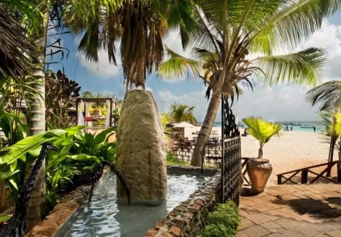 Det familjeägda hotellet är inrett i klassisk Zanzibarstil med en modern twist, har en egen strand och ligger i stort sett i en stor botanisk trädgård med fler än 3 000 exotiska växter, träd och blommor.
