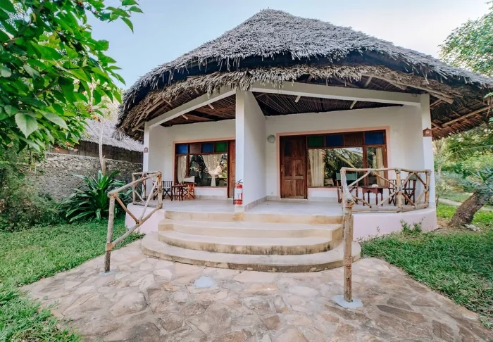 Resortet består av runda bungalows byggda i traditionell afrikansk stil. Alla rummen vetter mot havet och har balkong, air-conditioning, myggnät, TV, telefon, minibar samt badrum med dusch, toalett och hårtork.