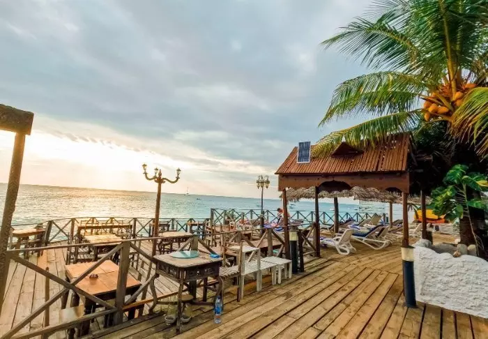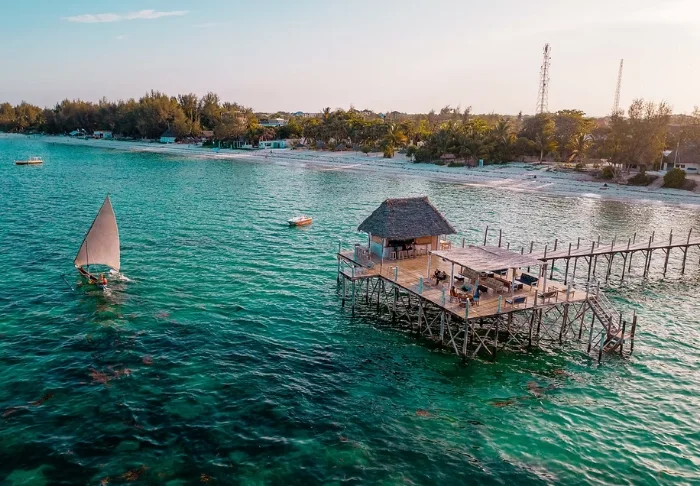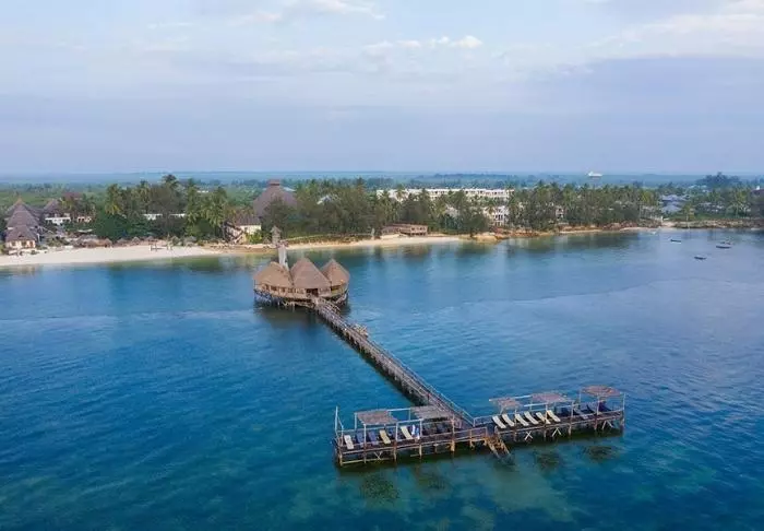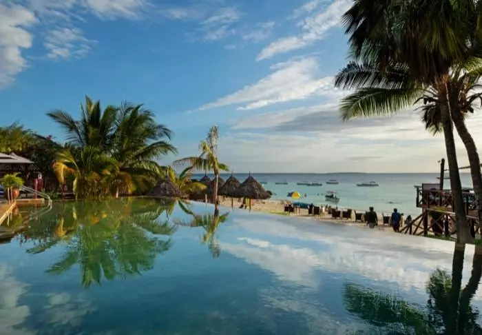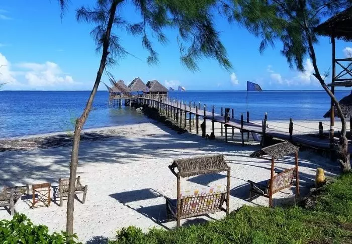 Zanzibar Bay Resort är systerresort till Paradise Beach Resort och de två resorterna delar en rad faciliteter, bland annat restauranger och den långa piren ut i vattnet.