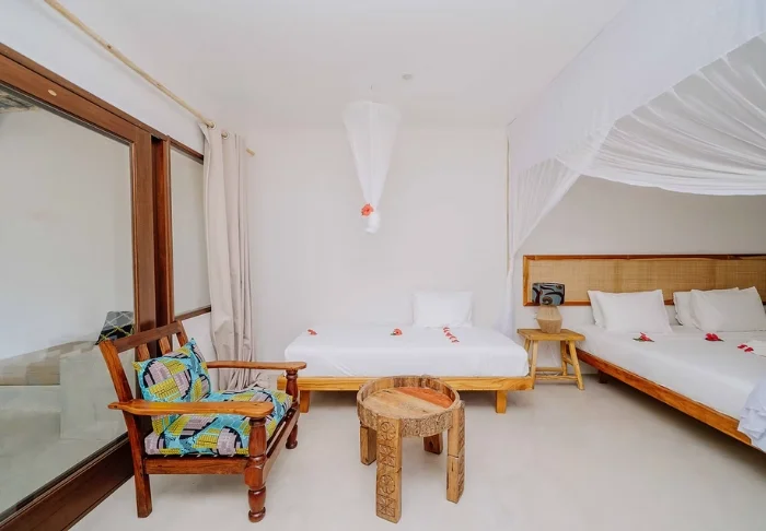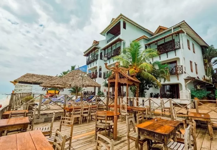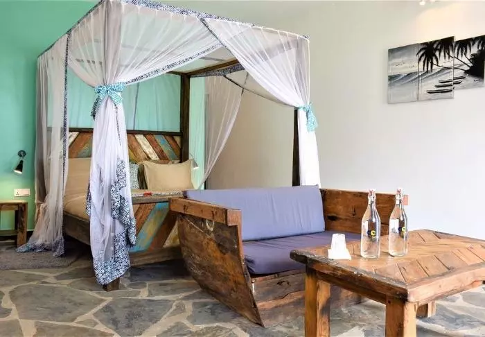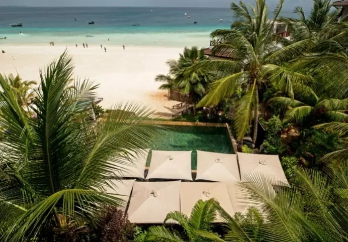 Bland svajande palmer på den livliga Paje strand hittar du boutiquehotellet Zula.