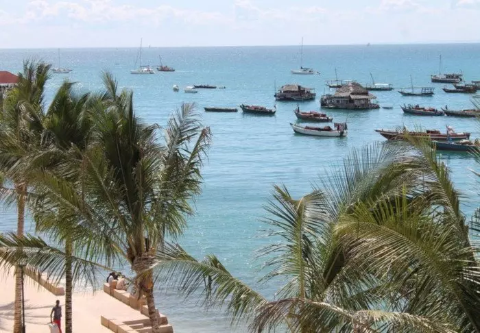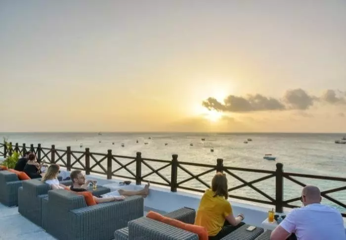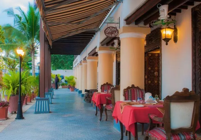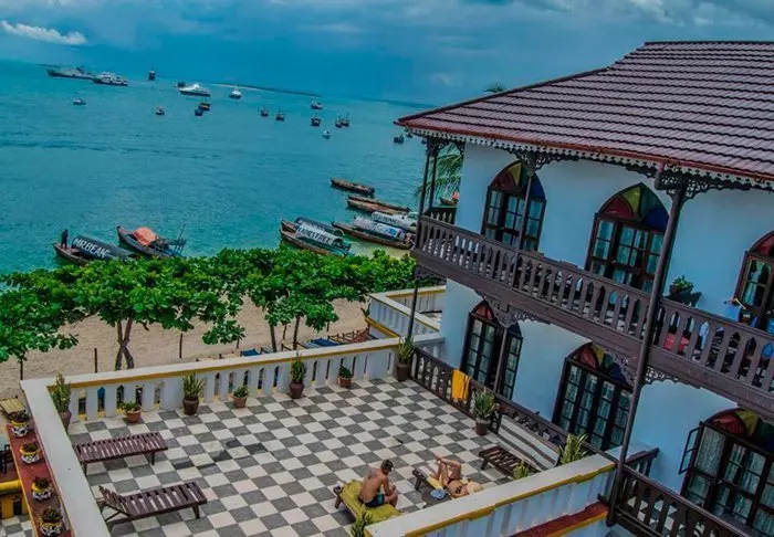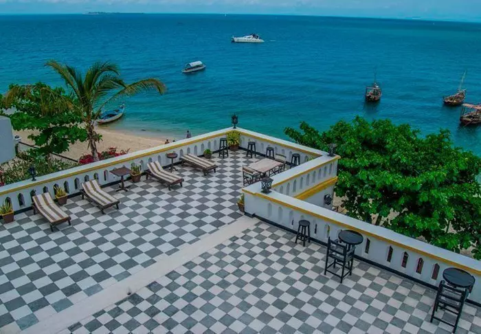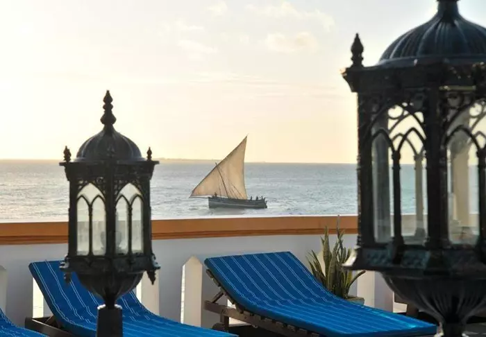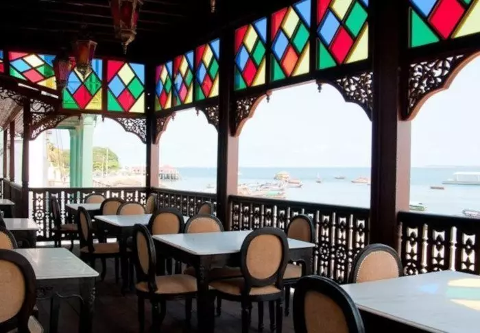Det ligger centralt i Stone Town precis vid vattnet och från terrassen kan man följa den livliga trafiken av handels- och fiskebåtar.