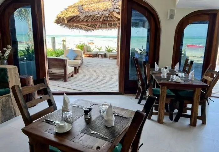 Från restaurangen har man en vacker utsikt över havet. Medan du njuter av din frukost kan du beundra de morgonpigga kitesurfarna, som redan tidigt på morgonen kastar sig ut i riskfyllda hopp på vågorna. Stranden vid Paje är väldigt känd för sina enastående platser för kitesurfarna. Mellan husen ligger poolen, varifrån man har utsikt över stranden och havet. Det finns gratis wifi på hotellet.
