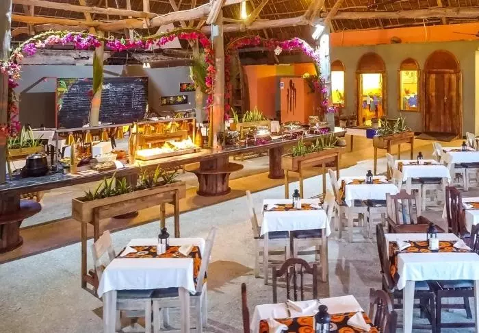 På hotellets restaurang serveras läckra lokala rätter med fisk och skaldjur samt varierade rätter från det afrikanska, indiska och arabiska köket. Maten är färsk och vällagad. Frukosten består av en buffé samt ägg och pannkakor som serveras direkt från köket, precis så som du vill ha dem.
