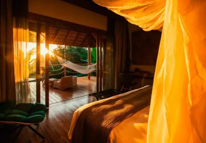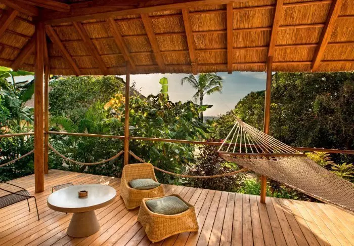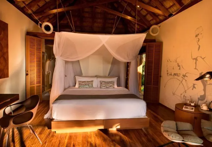 Inredningen i alla bungalower är inspirerad av modern afrikansk arkitektur med fokus på hållbarhet. Här finns allt du kan önska dig: en egen stor och välmöblerad terrass, inom- och utomhusbad, te- och kaffefaciliteter, gratis wifi, aircondition, platt-tv osv. Samtidigt råder här en otroligt avslappnad och tillmötesgående stämning.