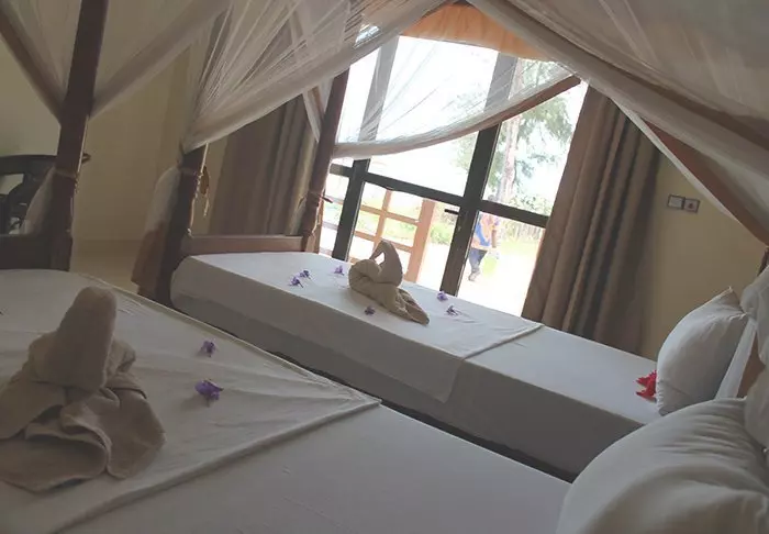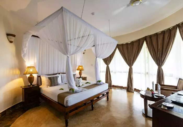 Samtliga rum är inredda i östafrikansk stil med trämöbler och ljusa färger på väggarna. Samtliga rum har myggnät, luftkonditionering, säkerhetsbox, minibar och te-/kaffekokare. Samtliga rum har dessutom egen veranda.
