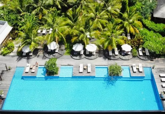 Lyxresorten ligger på öns sydvästra kust – bara en timmes bilresa från den internationella flygplatsen – men i en helt annan värld. Omgivna av en stor tropisk trädgård och med utsikt över kokospalmer som vajar i vinden på den kilometerlånga vita sandstranden, hittar du 66 privata och exklusiva villkor.