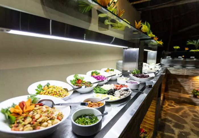 Det finns flera barer och restauranger på hotellet med möjlighet till både vegetarisk och vegansk mat – kom bara ihåg att nämna detta när du bokar resan.