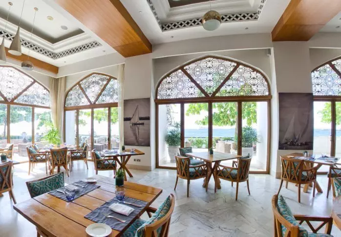 Hotellets restaurang Marhaba har en uteservering under tak som ligger direkt vid vattnet, där du kan se den vackra solnedgången medan du avnjuter en läcker måltid. Restaurangen är mycket känd för sina utsökta fisk- och skaldjursrätter. Om du inte är så mycket för fisk och skaldjur serveras det även traditionella och internationella á la carte-rätter.