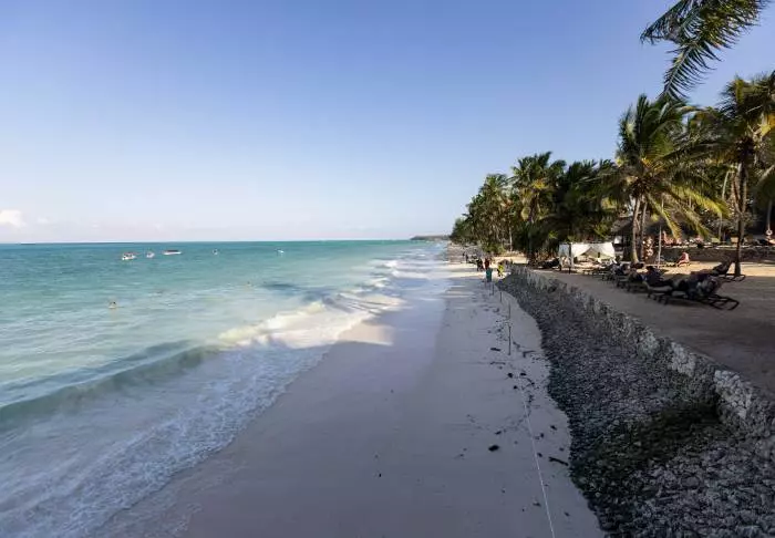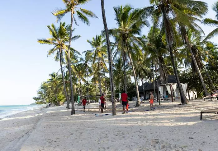 Som en av få platser på östkusten har Karafuu byggt en gångväg från stranden över korallerna så att du även när det är lågvatten kan ta dig ut dit vattnet är djupt nog för att bada.