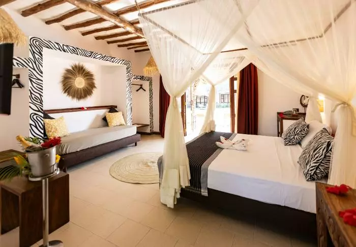 Det femstjärniga Karafuu har en framträdande placering mitt på stranden på Zanzibars östkust. Hotellet består av 135 rum i olika kategorier så det finns något för alla smaker. Alla rum har naturligtvis luftkonditionering, minibar, säkerhetsbox samt te- och kaffekokare.